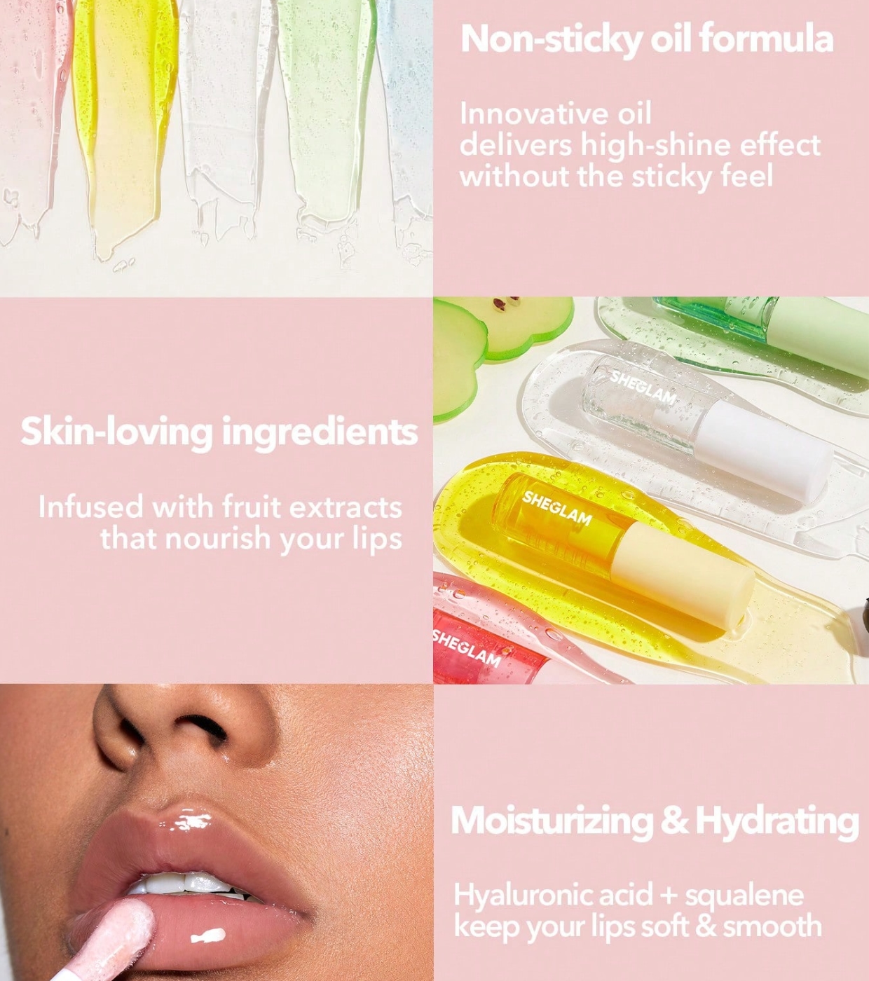 Dê um descanso ao seu gloss tradicional e descubra o óleo labial hidratante SHEGLAM , a alternativa perfeita para lábios viçosos e confortáveis, sem aquela sensação pegajosa.