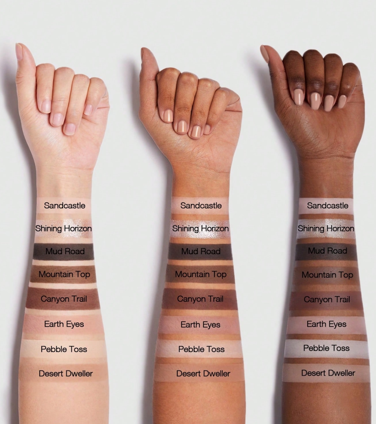 Sandcastle/Earth Eyes/Pebble Toss/Desert Dweller INGREDIENTS: MICA, ALUMINA, KAOLIN, SILICA, ALUMINUM STARCH OCTENYLSUCCINATE, SYNTHETIC WAX, METHYL METHACRYLATE CROSSPOLYMER, BORON NITRIDE, HYDROGENATED COCO-GLYCERIDES, DIMETHICONE, PETROLATUM, VINYL DIMETHICONE/METHICONE SILSESQUIOXANE CROSSPOLYMER, TRIETHOXYCAPRYLYLSILANE, PHENOXYETHANOL, TRIMETHYLSILOXYSILICATE, CAPRYLYL GLYCOL, TOCOPHERYL ACETATE, MAY CONTAIN/PEUT CONTENIR: TITANIUM DIOXIDE (CI 77891), IRON OXIDES (CI 77491, CI 77492, CI 77499), MANGANESE VIOLET (CI 77742) , YELLOW 5 LAKE (CI 19140).