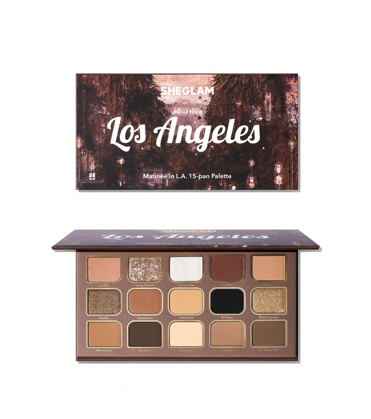 Ilumine seu visual com a paleta de sombras Matinée in L.A da SHEGLAM , uma paleta com 15 tons inspirados na energia e no brilho de Los Angeles.