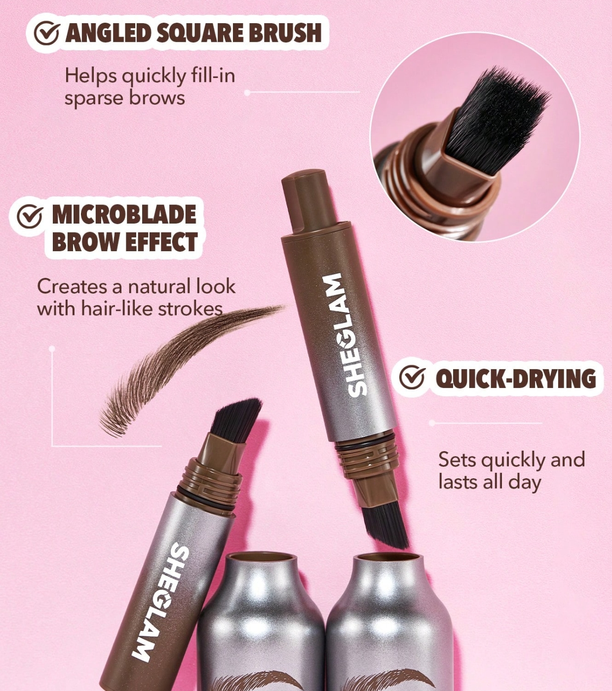 Este formato inovador inclui um pincel quadrado angulado e uma solução líquida mate que permite desenhar traços finos e realistas, imitando pelos naturais para um autêntico efeito de microblading.