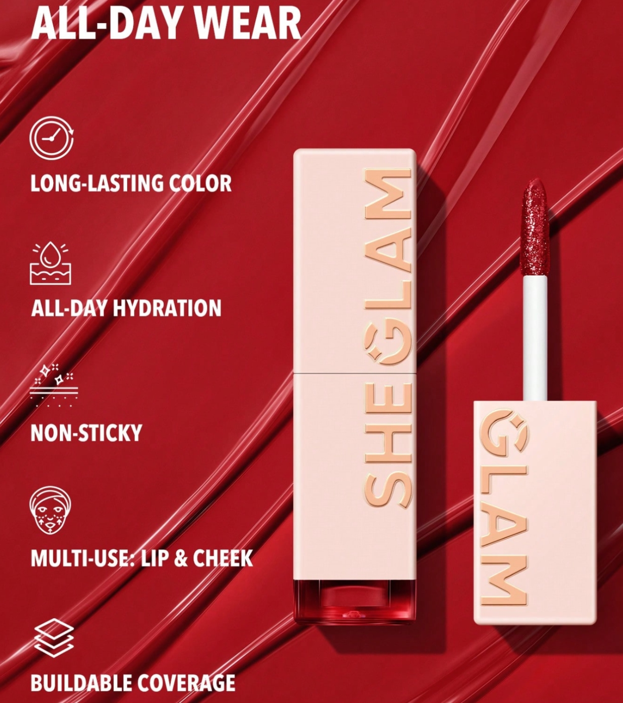 Reaplicar? Não precisa. Com o batom líquido Take A Hint da SHEGLAM , você terá uma cor intensa e duradoura sem se preocupar com retoques constantes.