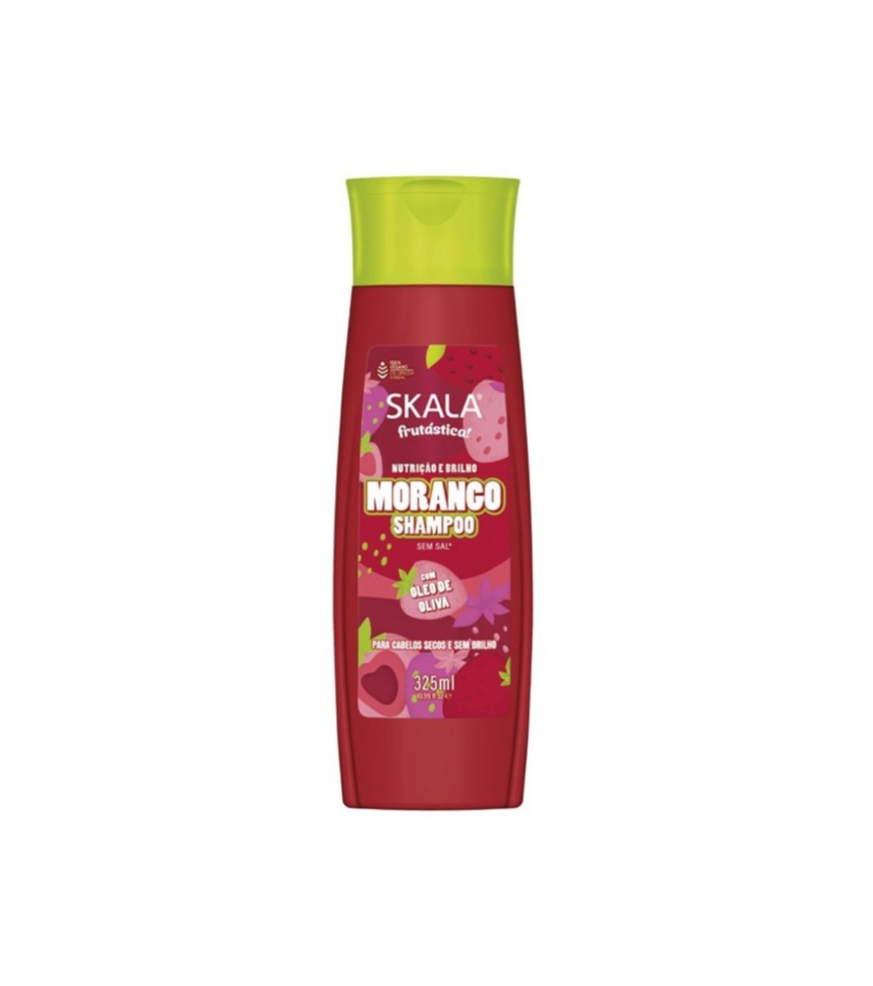 Desfrute de um cuidado capilar intensivo com o Shampoo de Morango Skala , formulado com uma poderosa combinação de ingredientes botânicos que nutrem profundamente e restauram a beleza natural do seu cabelo: