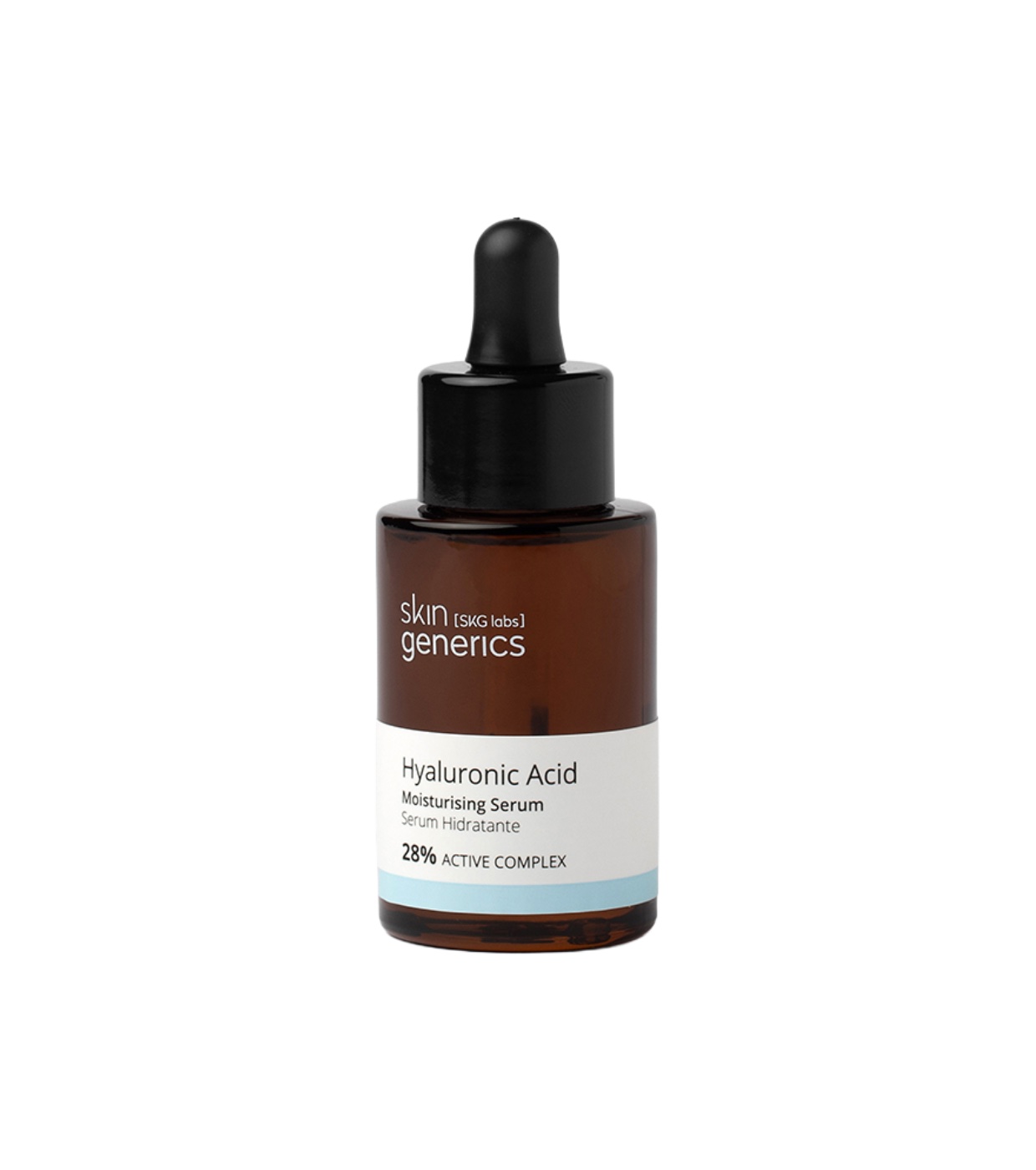 Este soro hidratante com ácido hialurônico da Skin Generics concentra 28% de princípios ativos hidratantes que garantem sua eficácia após uso contínuo.