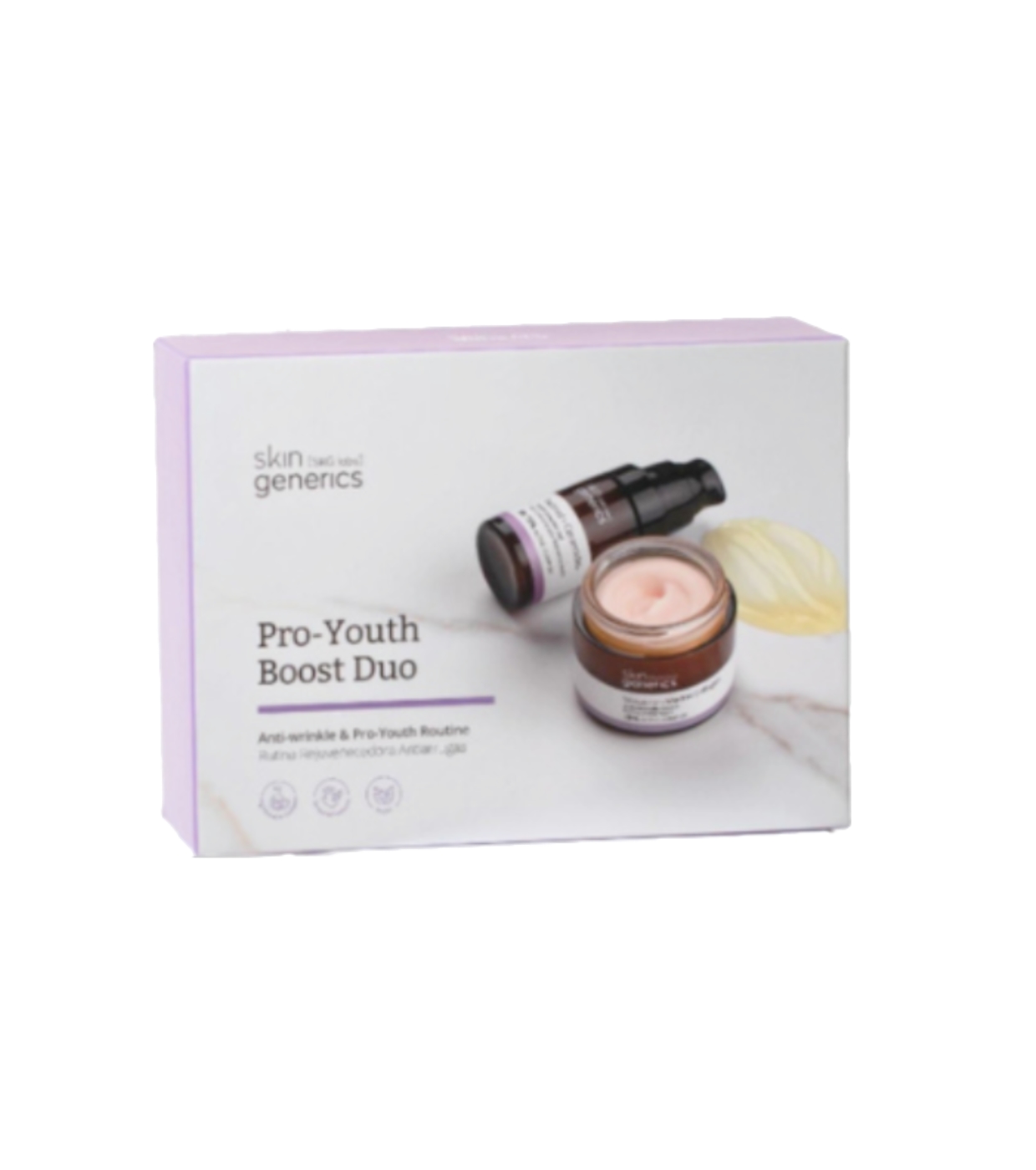 O Pro-Youth Boost Duo Skin Generics é um tratamento antienvelhecimento completo, desenvolvido para rejuvenescer a pele, melhorar a firmeza e reduzir visivelmente as rugas, combinando duas fórmulas de alto desempenho que atuam em sinergia.