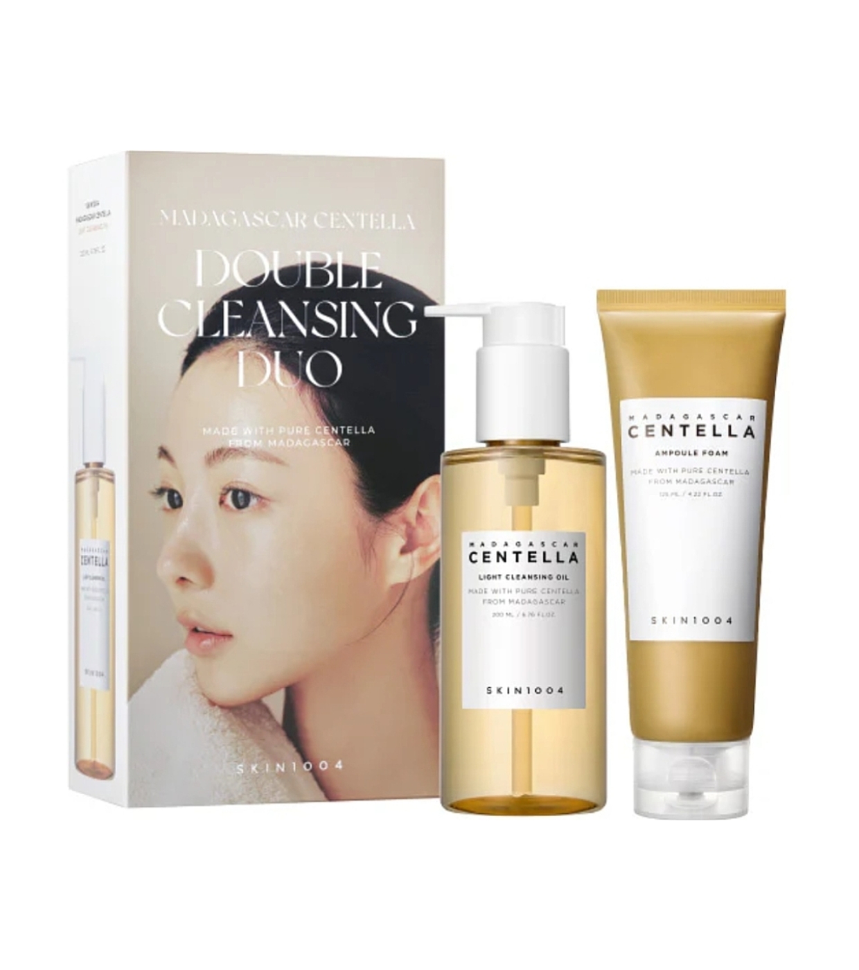 O Madagascar Centella Double Cleansing Duo Set da SKIN1004 é a dupla perfeita para uma limpeza facial dupla eficaz e suave, ideal até mesmo para peles sensíveis.