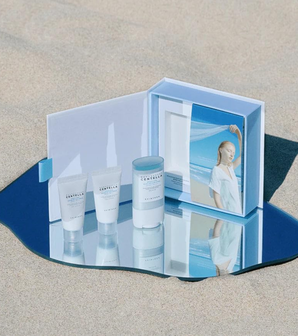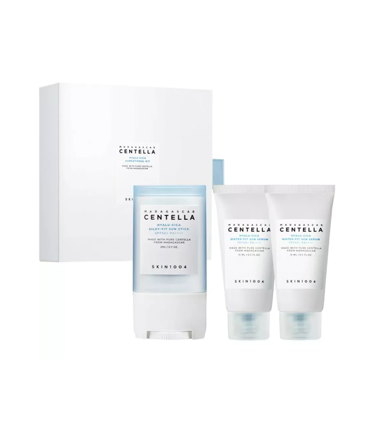 O Hyalu-Cica Sun Care Kit da SKIN1004 é um conjunto completo de hidratação e proteção solar, ideal para o cuidado diário da pele e para levar sempre consigo graças aos seus formatos práticos.