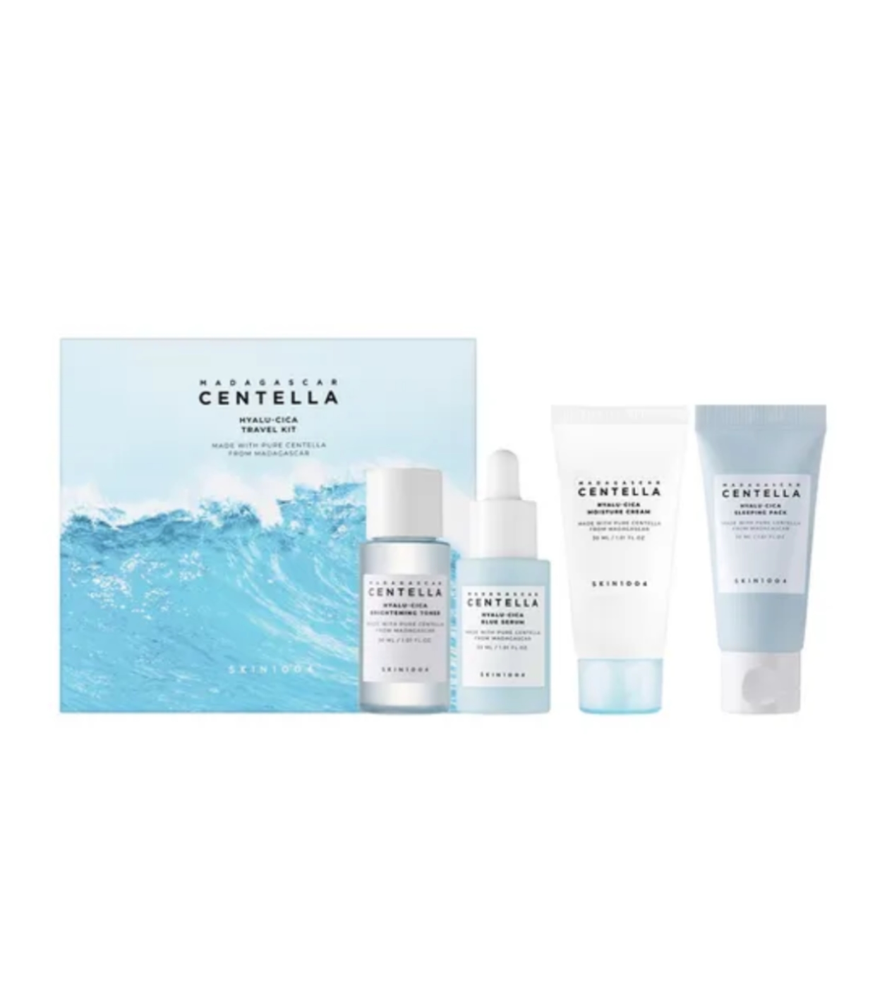 Descubra a rotina completa de hidratação e acalmamento com o Madagascar Centella Hyalu-Cica Travel Kit da SKIN1004 , um miniconjunto prático ideal para viagens ou para experimentar a linha.