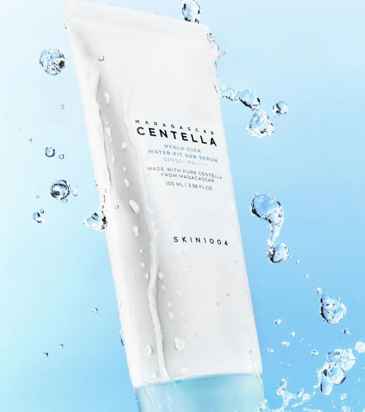 Este sérum protetor solar facial Water-Fit SPF50+ PA++++ da SKIN1004 é formulado para proporcionar hidratação intensa e ao mesmo tempo proteger contra os raios UV.