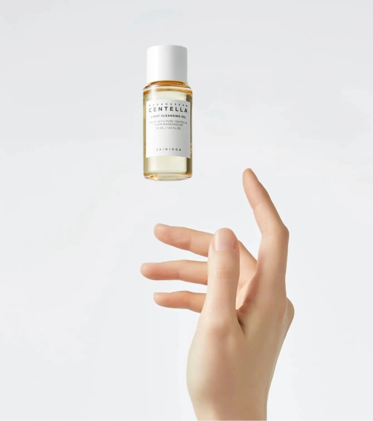 Descubra o óleo de limpeza tamanho viagem com Centella Asiatica de Madagascar da SKIN1004 , o essencial para iniciar sua rotina de limpeza facial com eficácia e cuidado.