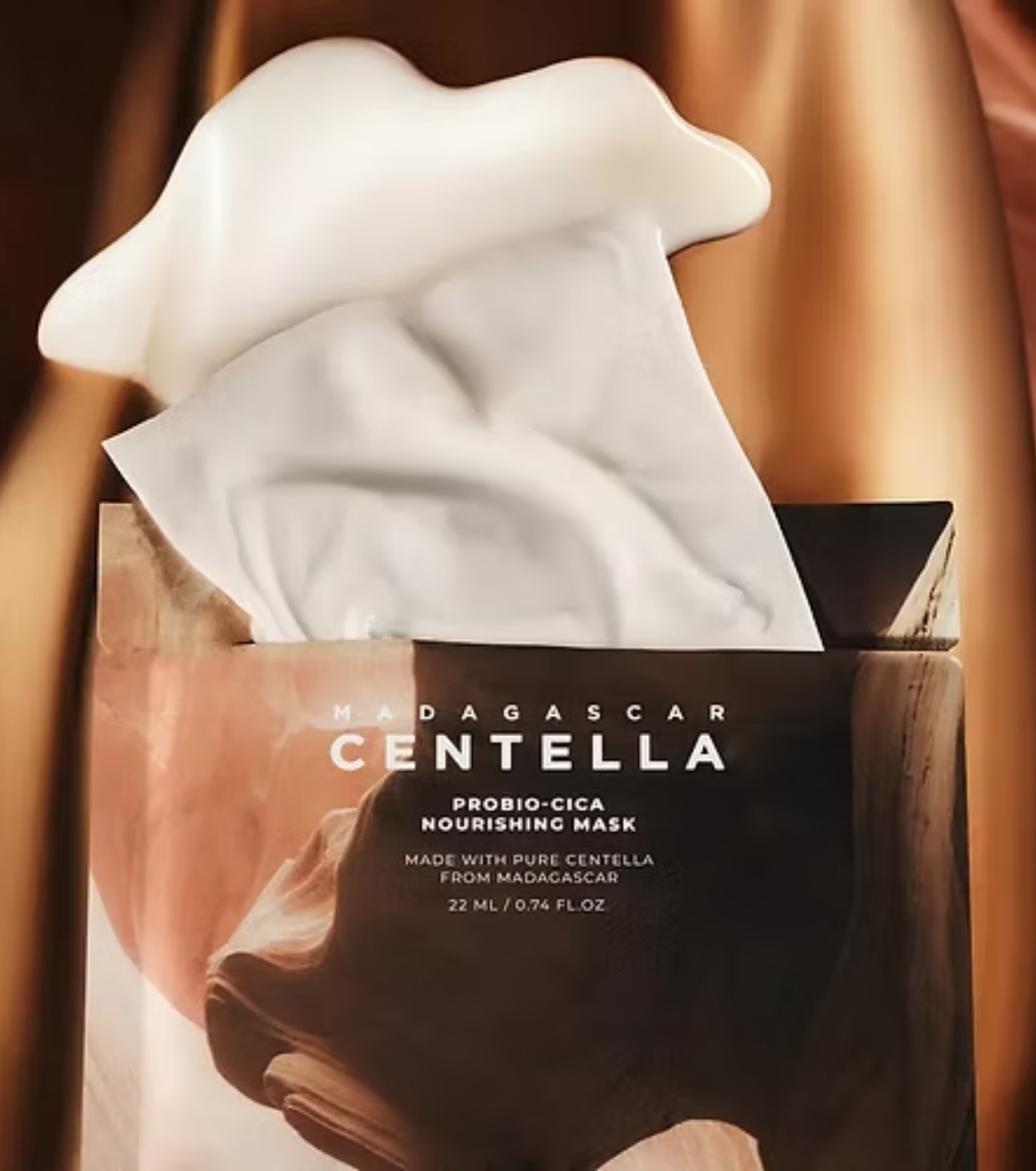 Uma máscara facial enriquecida com uma essência rica e leitosa que combina Centella Asiática fermentada de Madagascar, 9 peptídeos, ceramidas e probióticos para nutrição intensiva e reparação visível desde o primeiro uso.