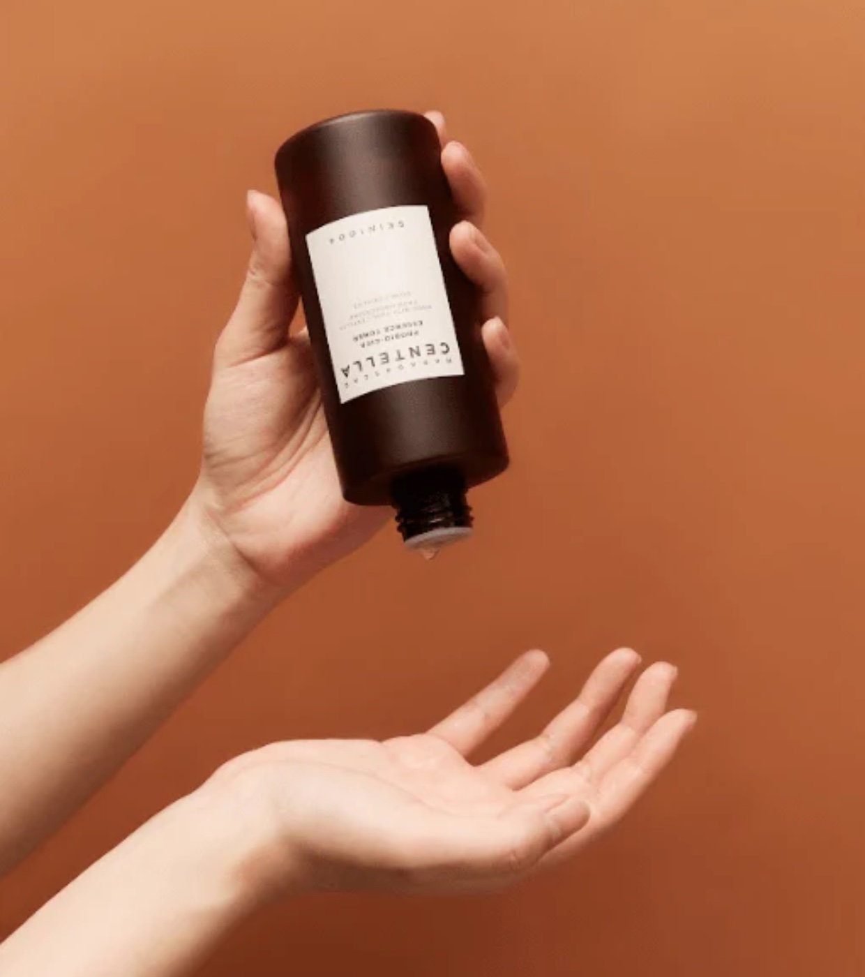 Combina Centella Asiatica fermentada de Madagascar, TEAK (princípios ativos da Centella Asiatica) com ácido hialurônico, ceramidas e probióticos.