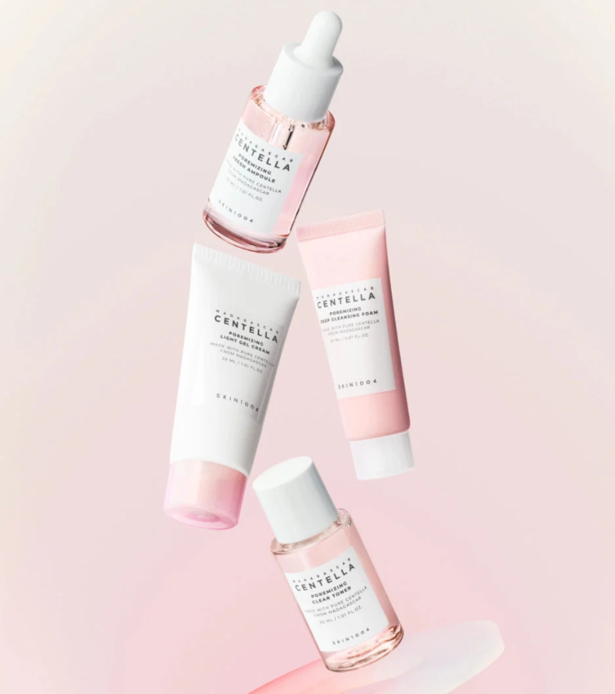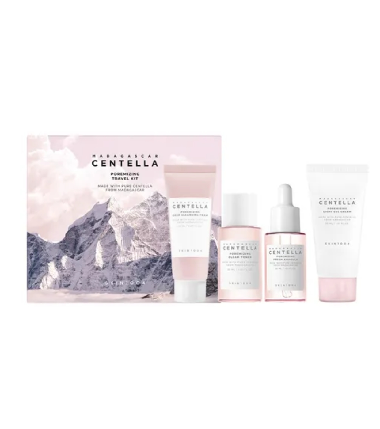 Descubra uma rotina completa para purificar a sua pele e minimizar a aparência dos poros com o Madagascar Centella Poremizing Travel Kit da SKIN1004 .