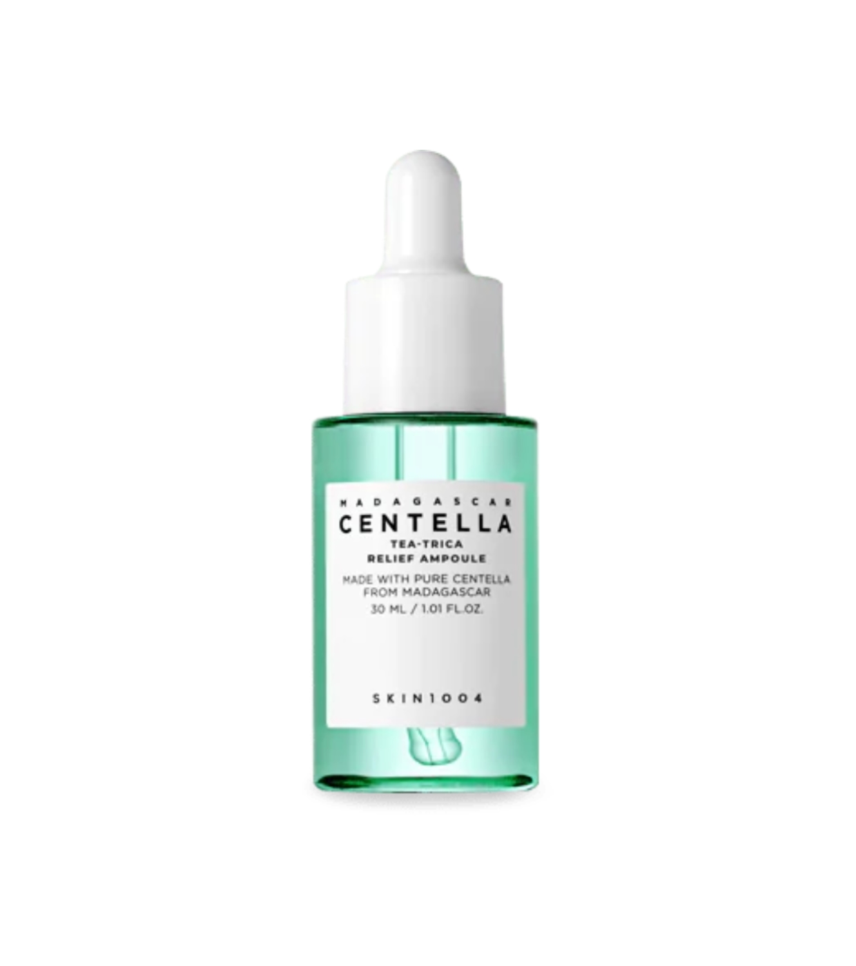 Esta ampola facial calmante de 30ml da SKIN1004 é leve e não comedogênica, formulada com árvore do chá, pinho e cipreste, projetada para acalmar a pele e proporcionar alívio da inflamação.
