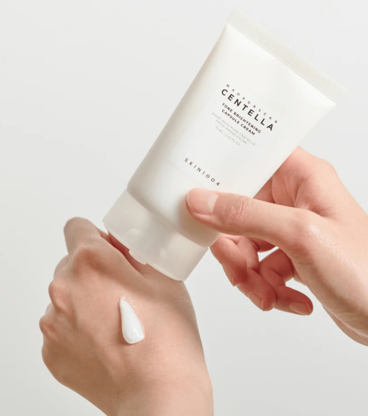 Consiga um tom de pele mais bonito, uniforme e luminoso com o Madagascar Centella Tone Brightening Capsule Cream da SKIN1004 .