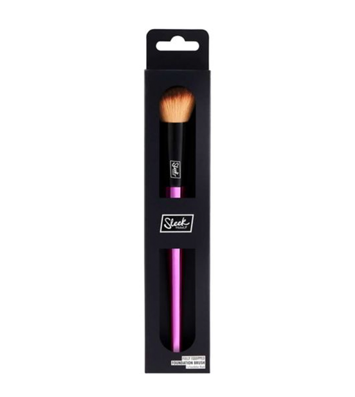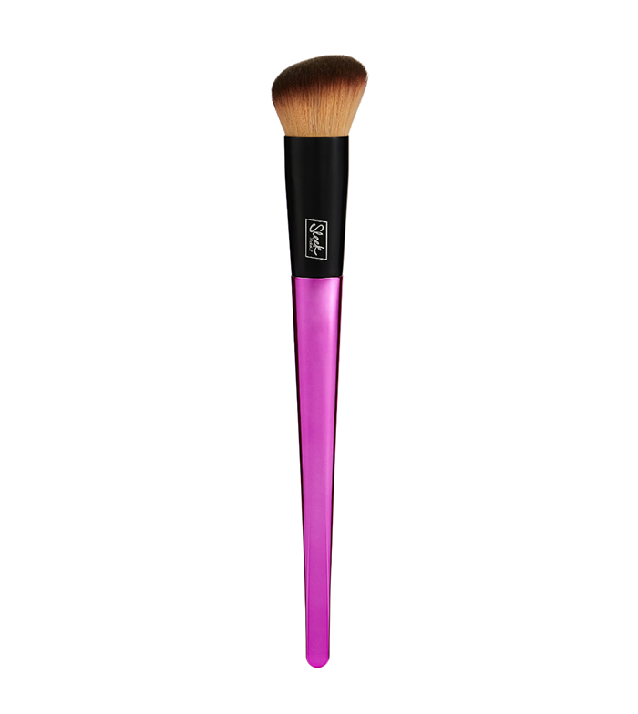 Pincel Sleek MakeUP com corte chanfrado para aplicação de base de maquiagem.