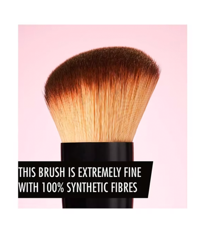 Suas cerdas são macias e deixam um acabamento integrado da base de maquiagem na pele.