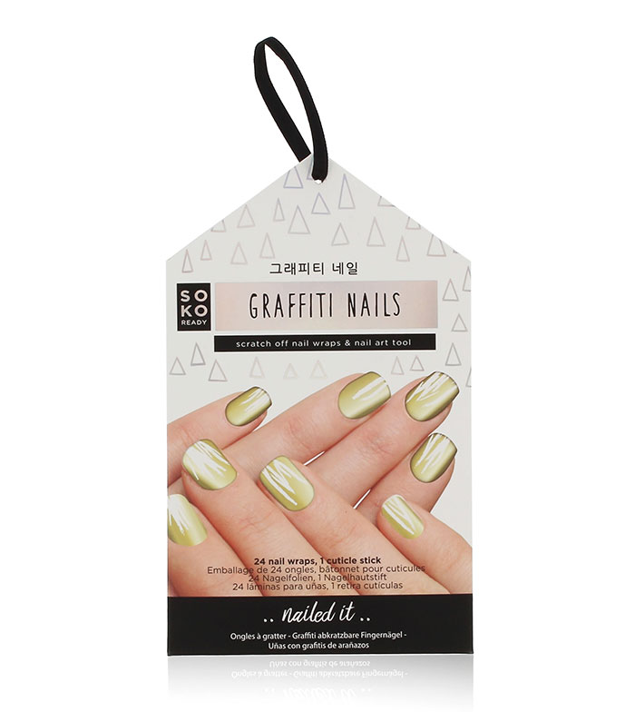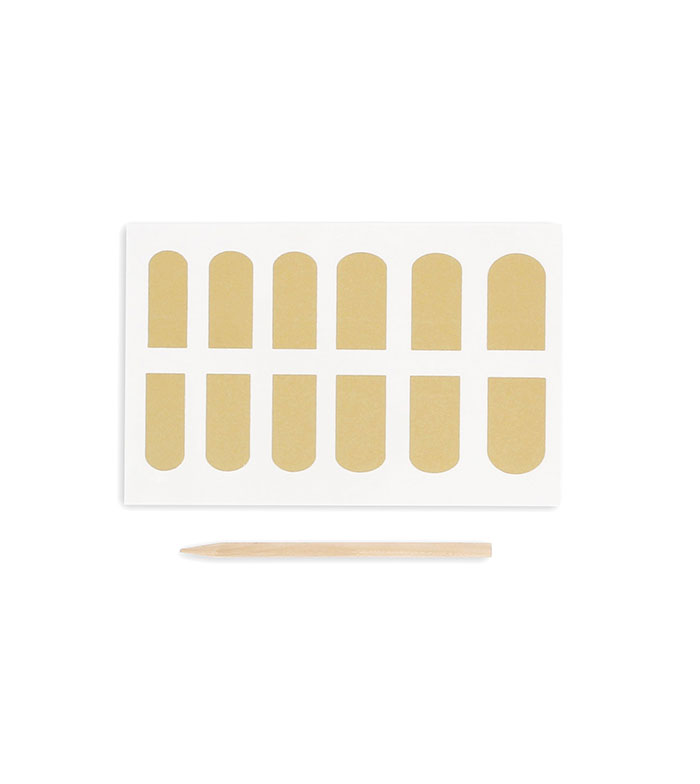 A embalagem contém 24 autocolantes e 1 removedor de cutículas com o qual poderas você pode "riscar" o adesivo revelando a cor debaixo.
