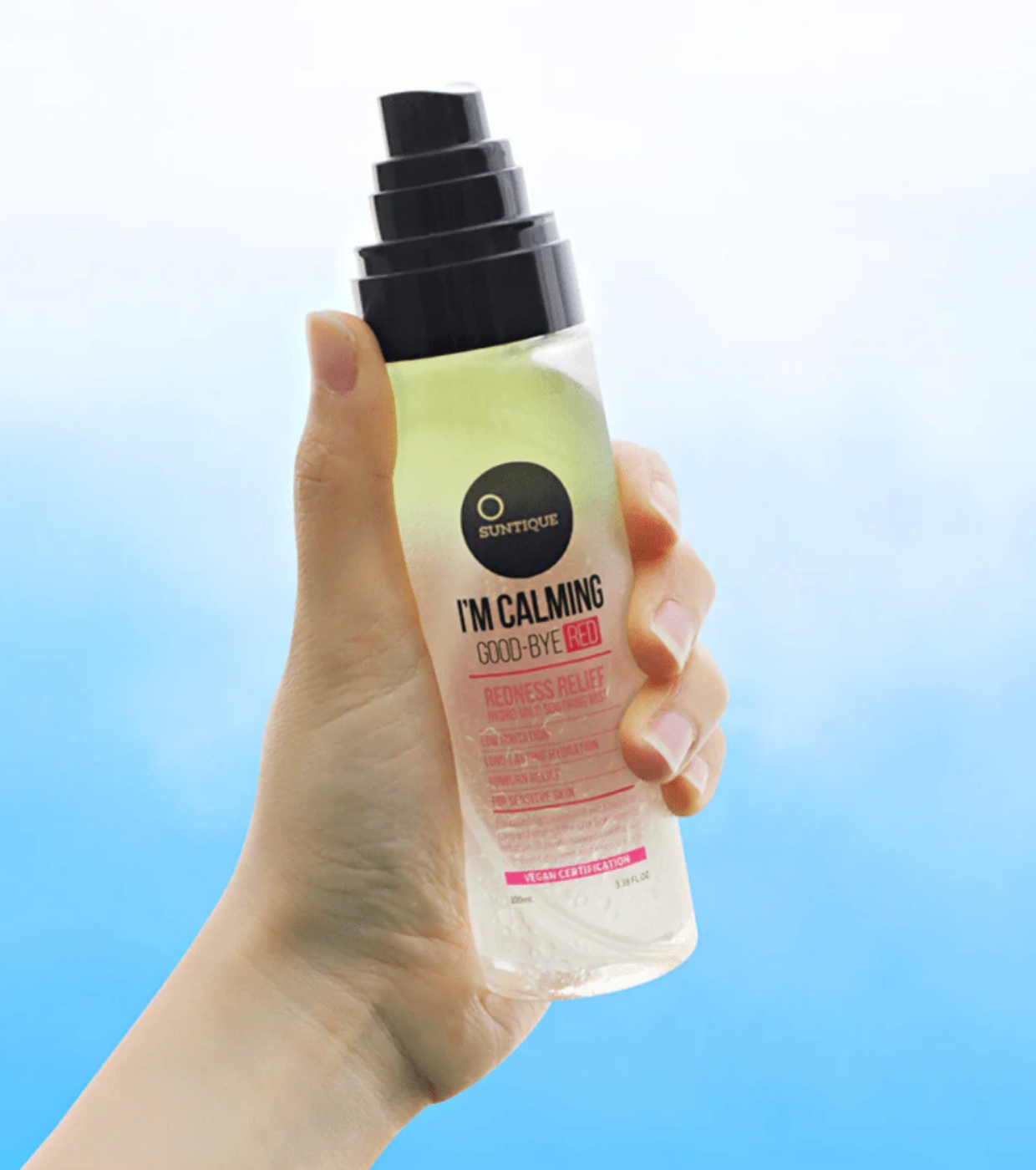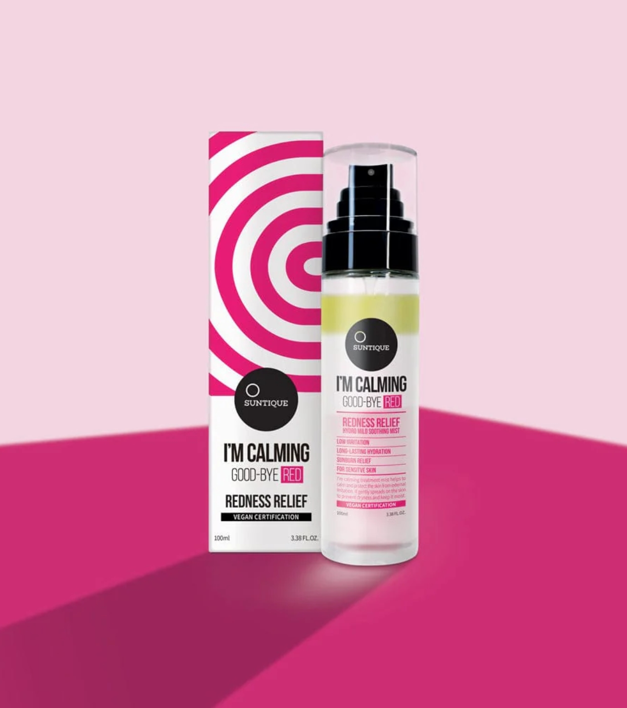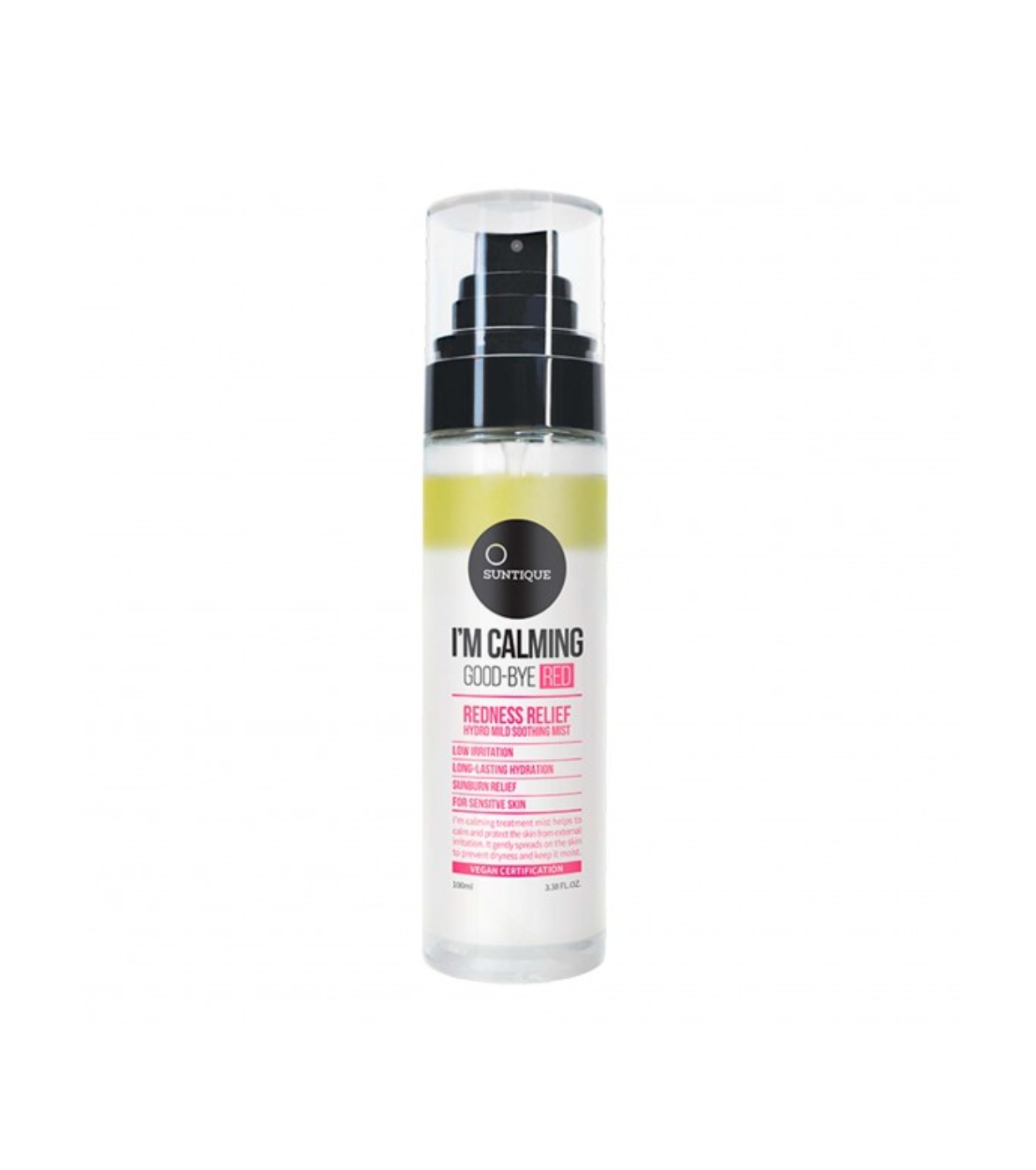 Estou acalmando a névoa facial Good Bye Red da SUNTIQUE.