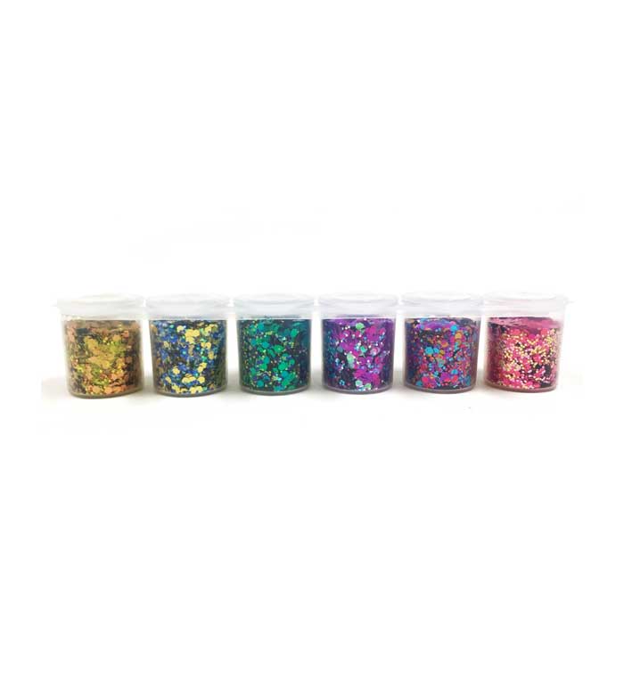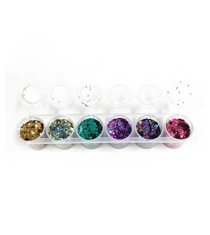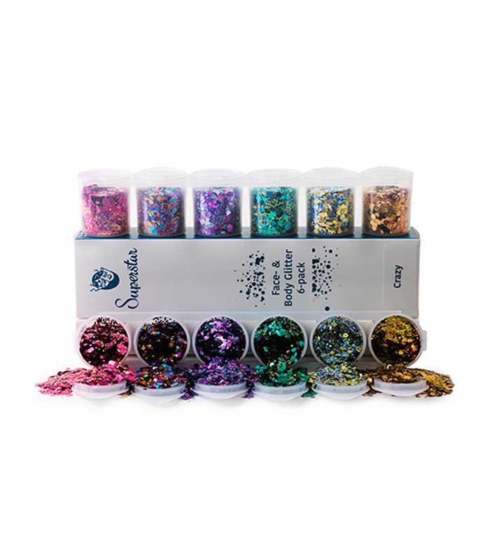 Pack com 6 tons de glitter para rosto e corpo Chunky Mix da Superstar.