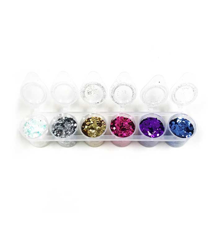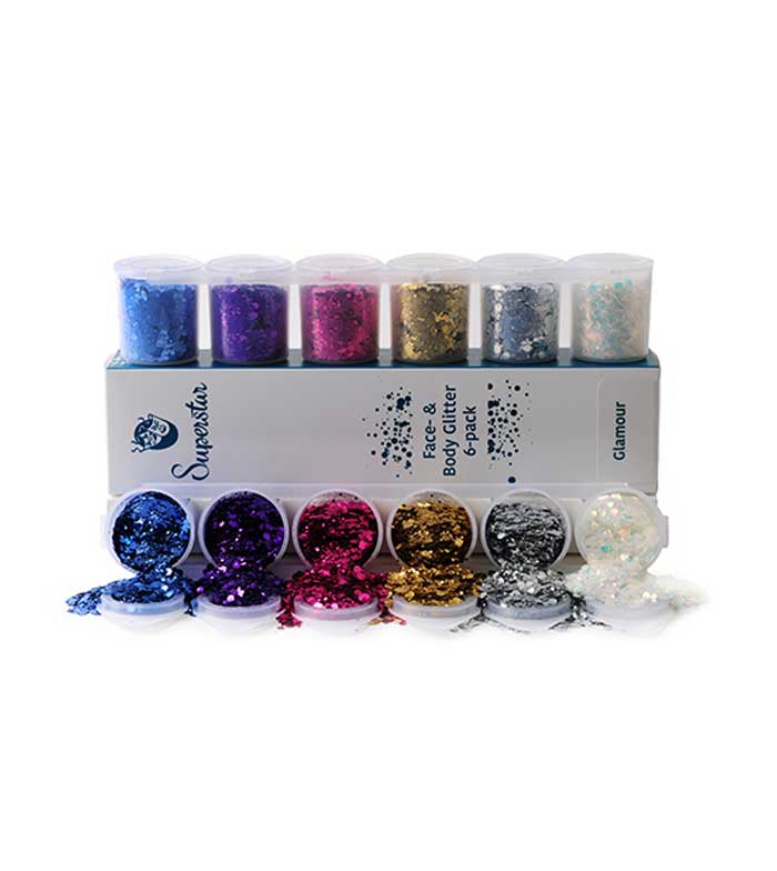 Pack com 6 tons de glitter para rosto e corpo Chunky Mix da Superstar.