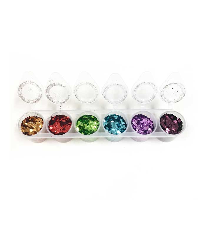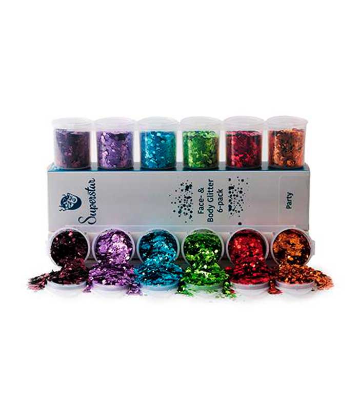 Pack com 6 tons de glitter para rosto e corpo Chunky Mix da Superstar.