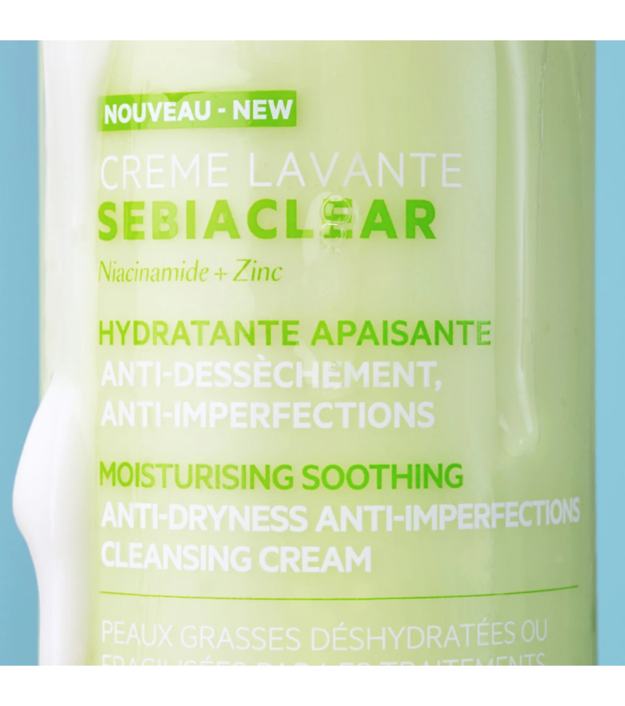 Para peles sensíveis, enfraquecidas e irritadas pelo ressecamento, desidratadas ou afetadas por tratamentos, este limpador é a solução ideal.