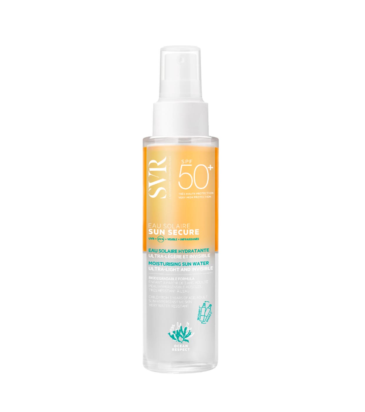 SVR Sun Secure água protetor solar hidratante ultraleve e invisível SPF50+.
