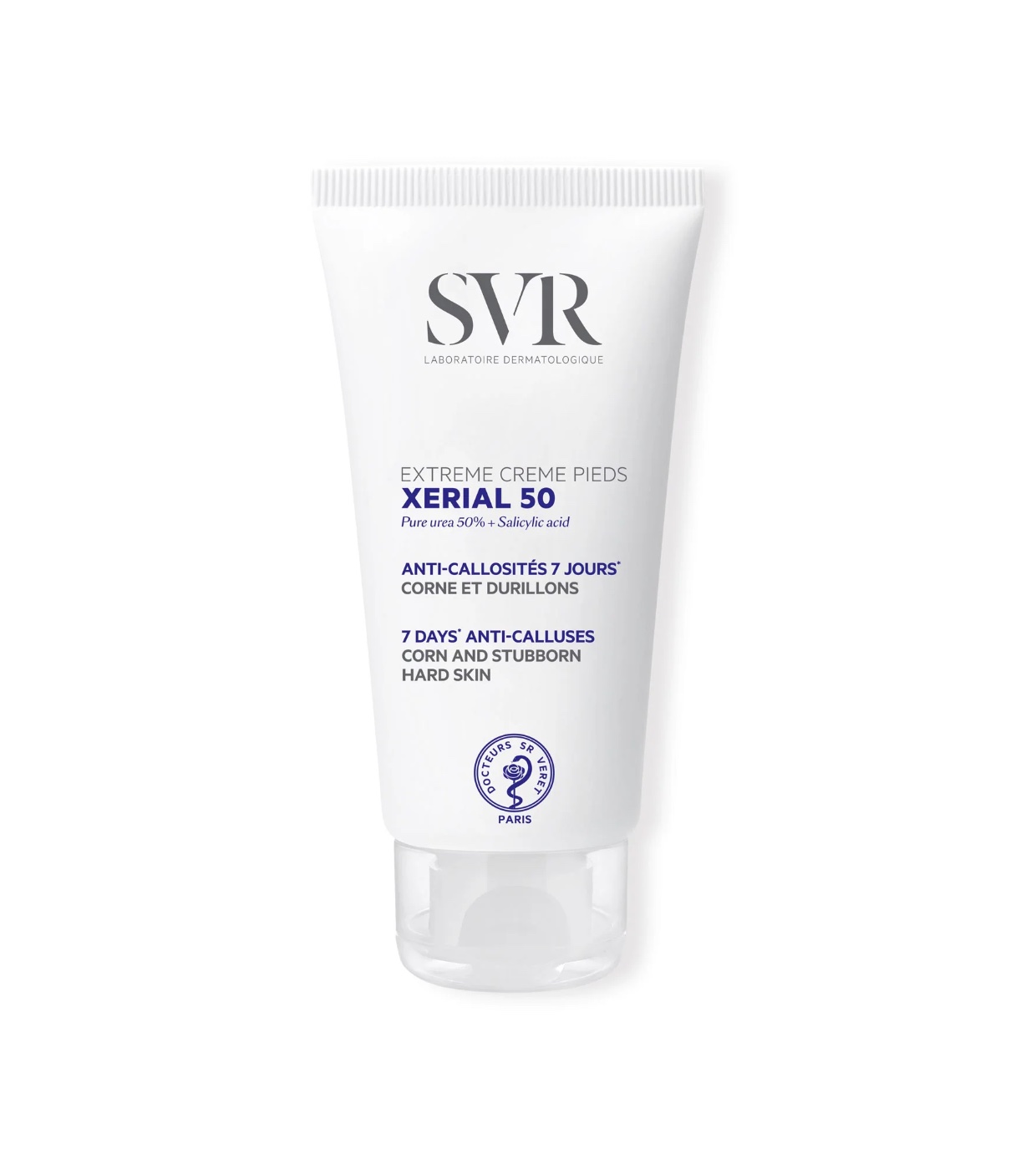 Por que escolher os pieds XERIAL 50 Extrême Crème? Devido à sua tecnologia patenteada Pure Ureia e à sua alta concentração de ácido salicílico que reduz calosidades teimosas e calosidades nos pés muito secos em apenas 7 dias!