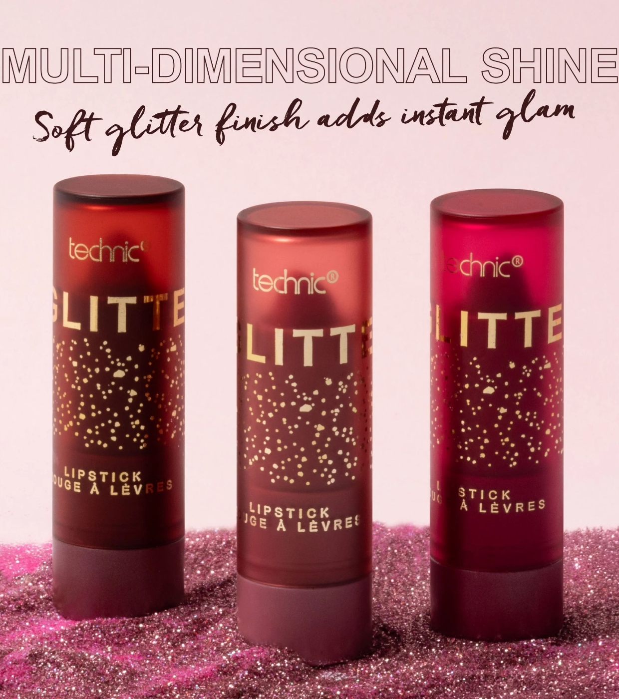 Altamente pigmentado e com um brilho sutil e sofisticado, o Glitter Lips da Technic Cosmetics realça qualquer look com um acabamento luminoso e glamoroso.