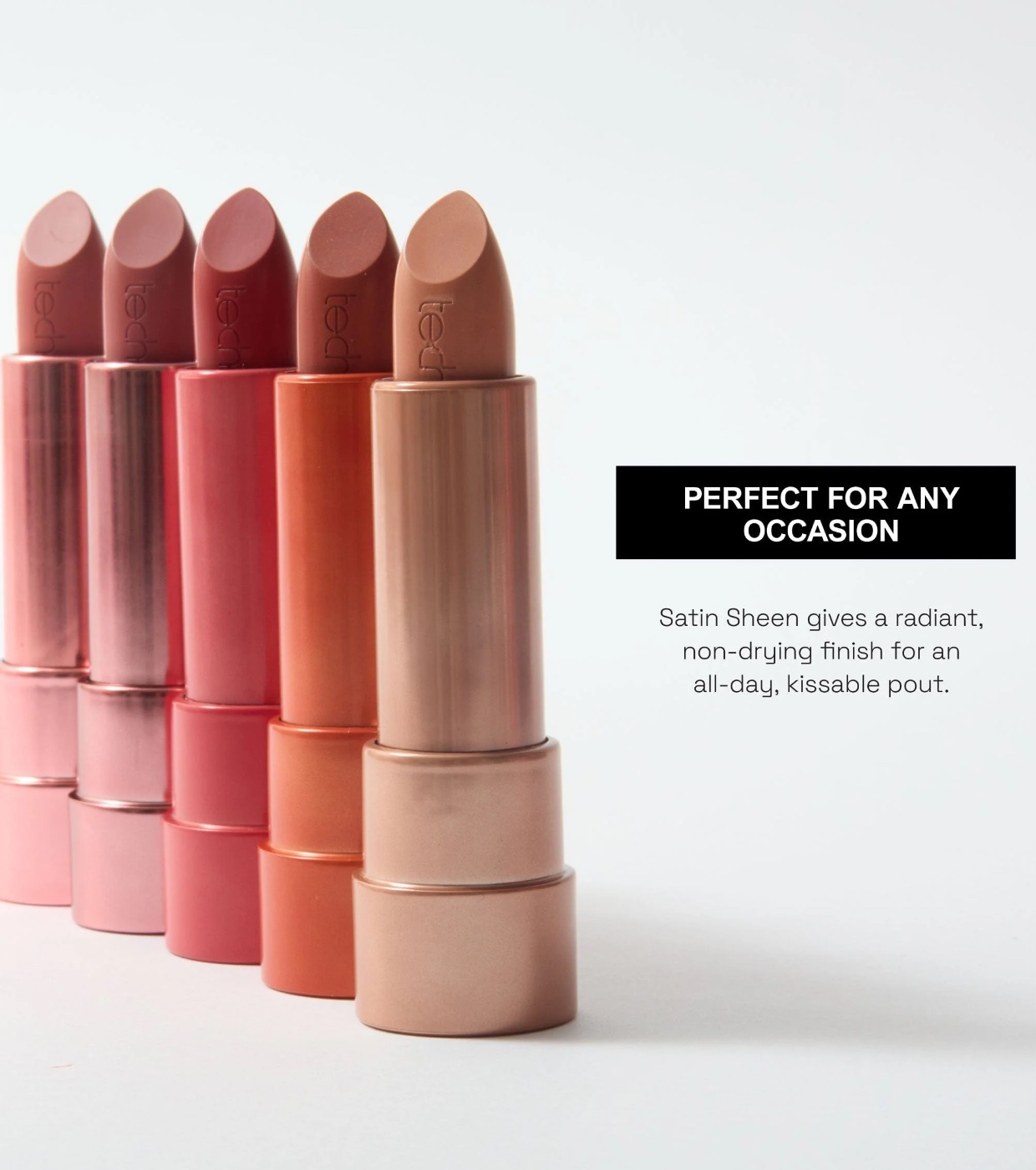 Esses batons oferecem uma gama de cores sofisticada com tons quentes e neutros que complementam qualquer look.