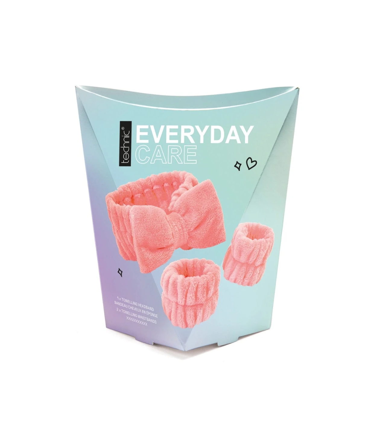 Transforme sua rotina diária em um verdadeiro ritual de spa em casa com este conjunto de faixa de cabeça + pulseira Everyday Care da Technic .