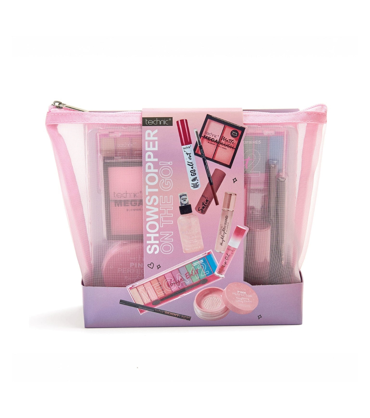 Descubra uma seleção exclusiva de produtos de maquiagem com o conjunto de maquiagem Showstopper on the go! da Technic reunidos em uma fabulosa bolsa de maquiagem, ideal tanto para presente quanto para um mimo de beleza.