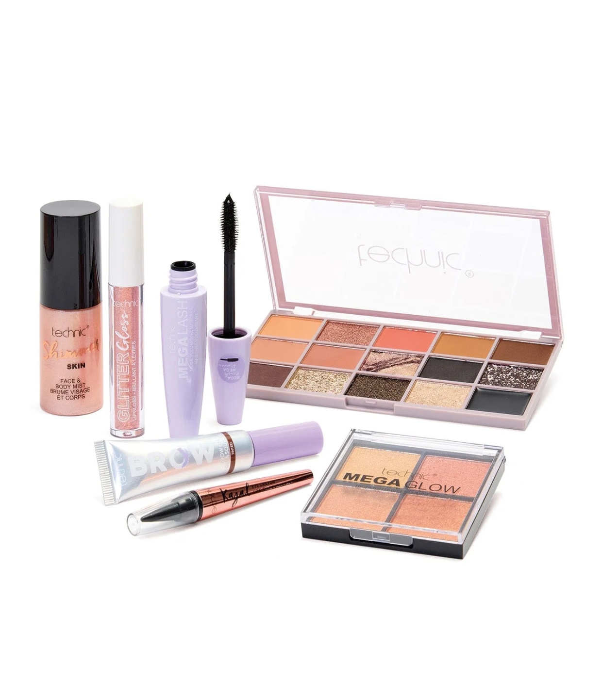 Para iluminar, adicione a paleta de iluminadores Warm Edit e o spray Shimmer Skin, que adiciona um brilho dourado ao rosto e ao corpo.