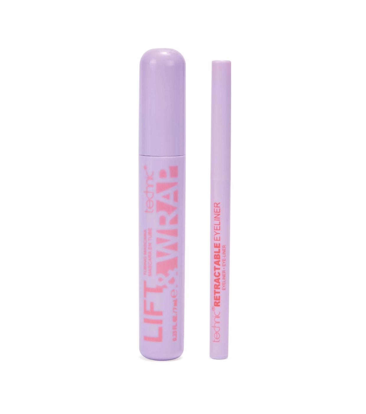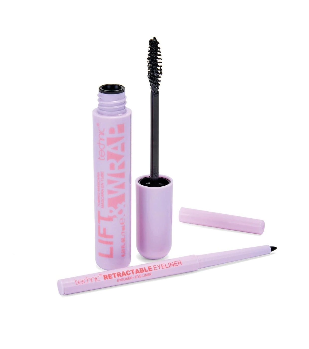 Inclui um tubo de rímel, projetado para levantar e envolver cada cílio, proporcionando volume e definição, e um delineador preto retrátil, cremoso e de alta precisão, perfeito para intensificar seu olhar com um acabamento duradouro.