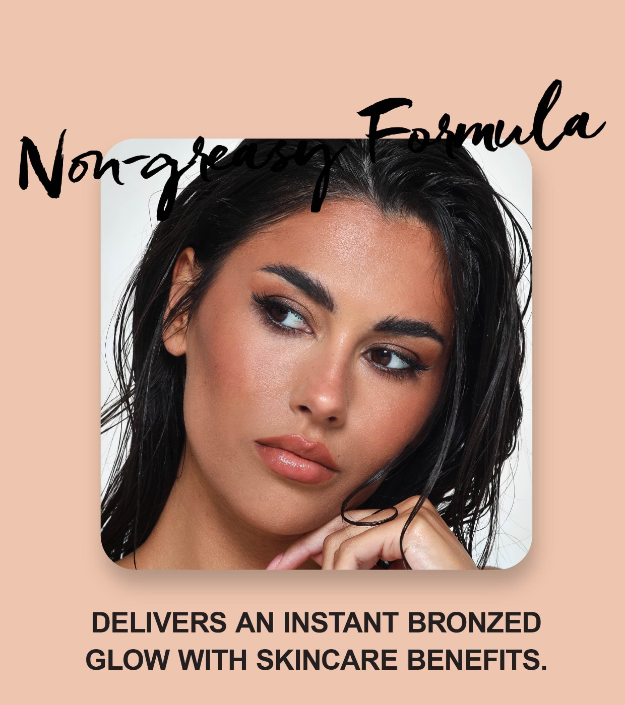 Bronzeado construível: misture algumas gotas com seu hidratante ou base para obter um tom personalizado, desde um brilho sutil até um bronzeado mais profundo.