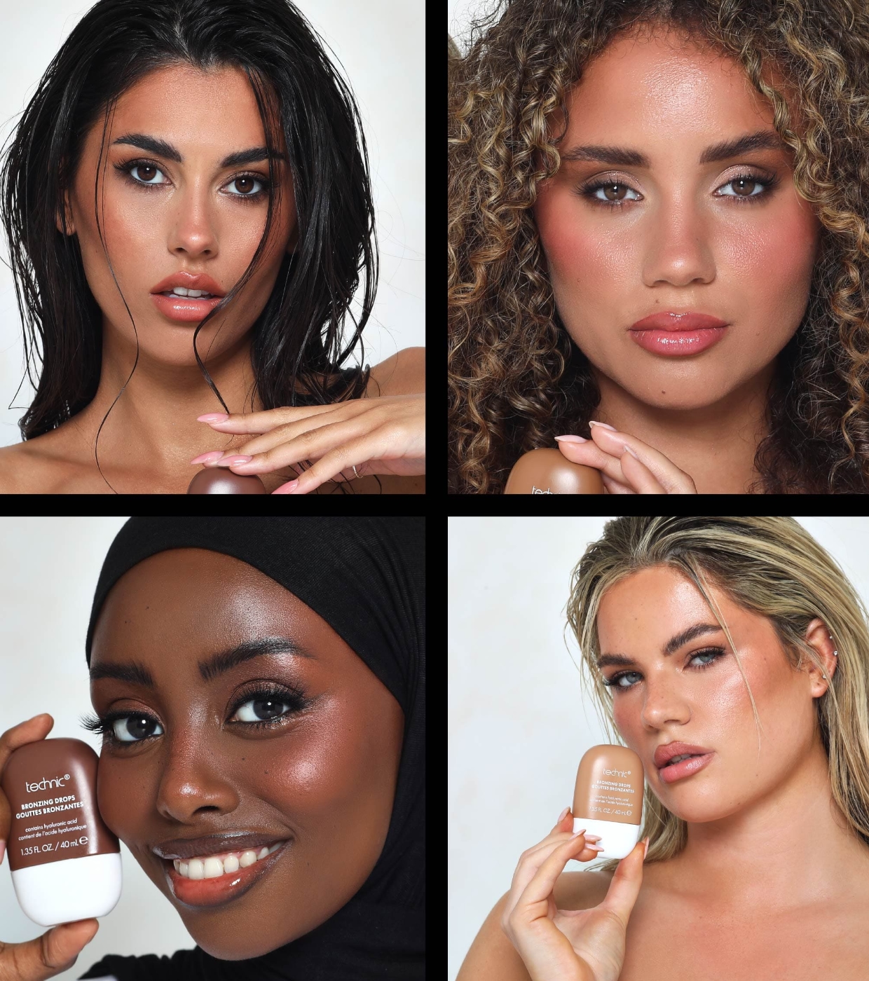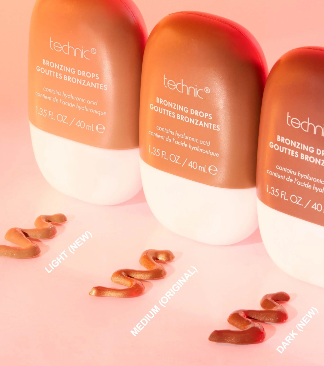 Exiba uma pele radiante e hidratada com um bronzeado natural graças às gotas de bronzeamento Technic Cosmetics .