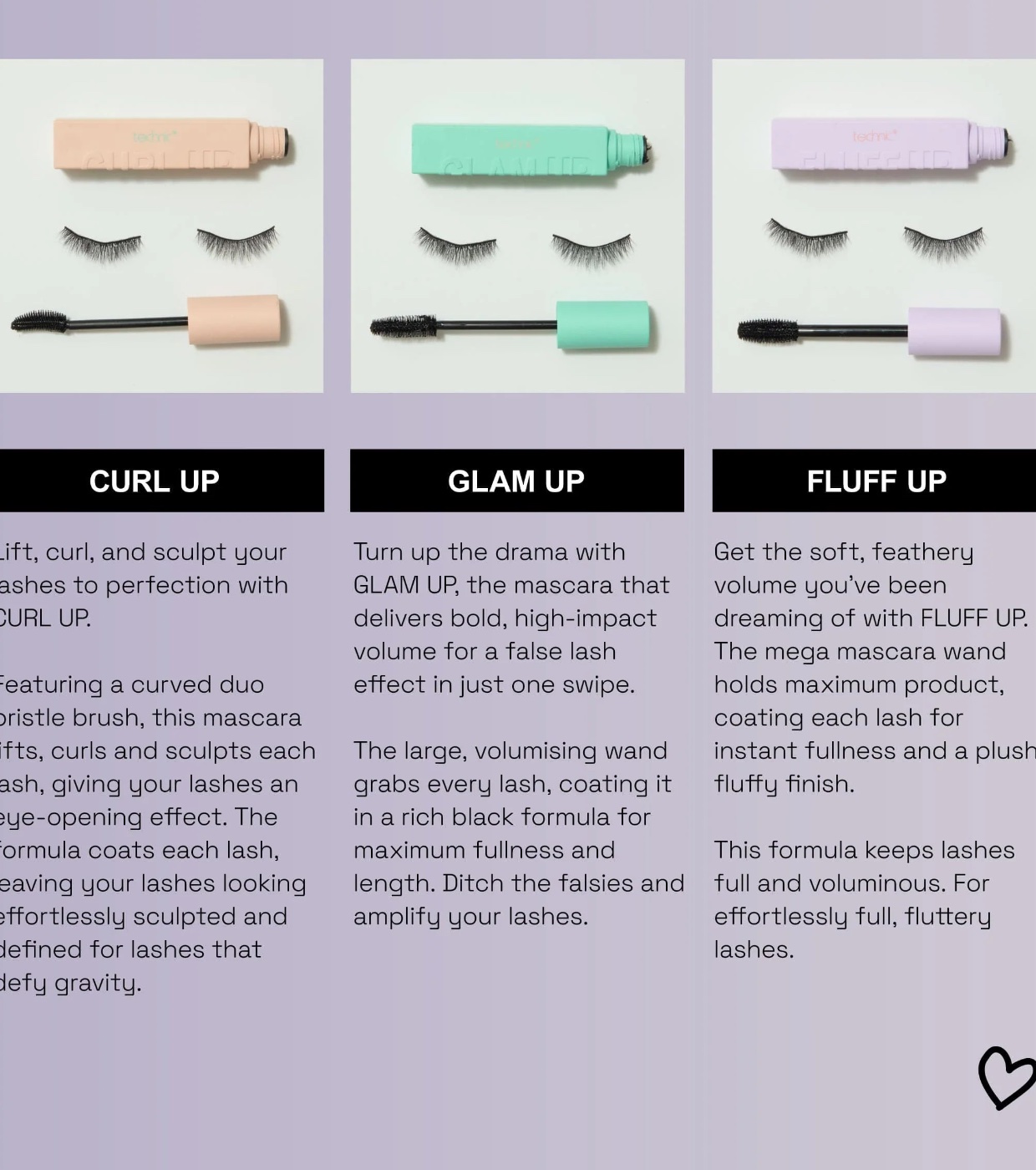 Escolha seu estilo de cílios favorito com essas máscaras da Technic Cosmetics, projetadas para criar cílios lindos e ousados, sem a necessidade de cílios postiços.