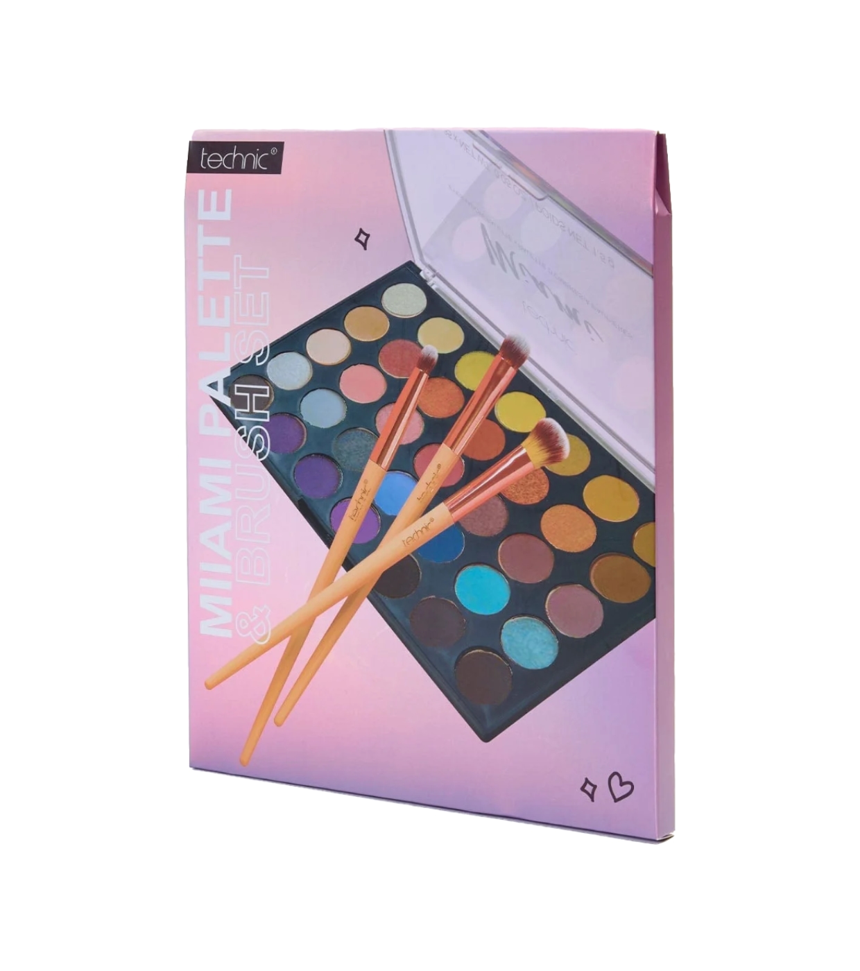 O Miami Palette & Brush Set da Technic reúne uma paleta de 35 sombras em pó altamente pigmentadas, em uma combinação de acabamentos matte e brilhantes para criar looks que vão do natural ao mais ousado e glamouroso.