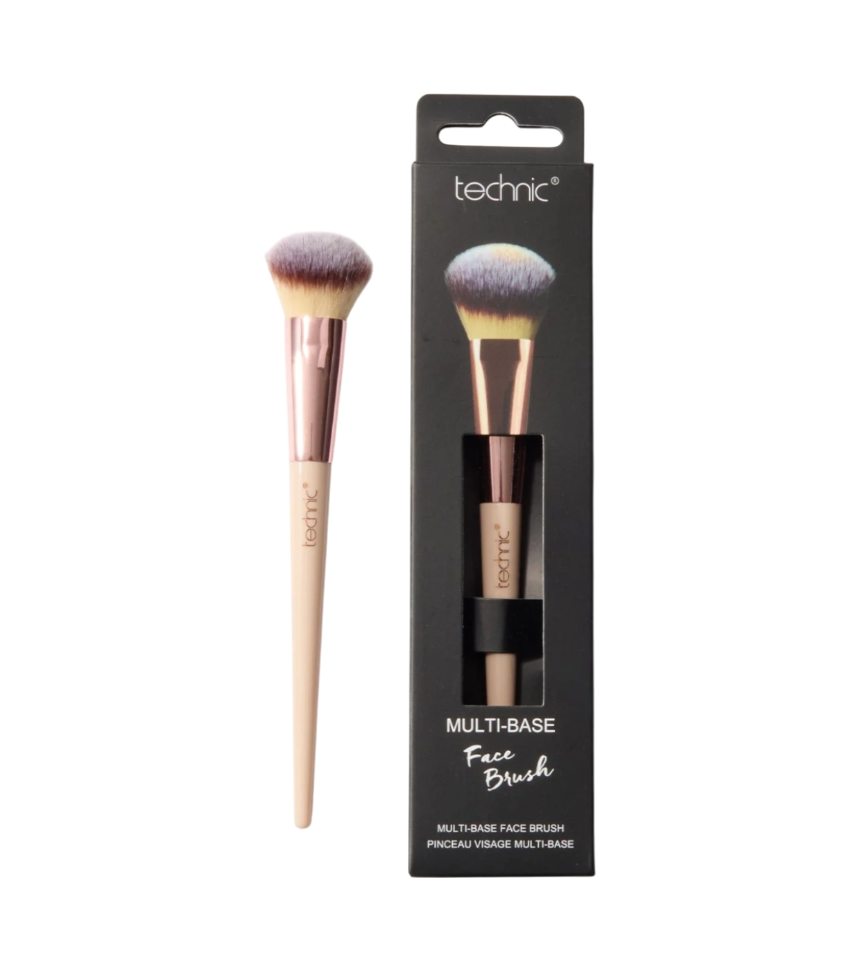 Use este pincel facial multiuso Technic Cosmetics Technic Cosmetics para aplicar primer, base líquida ou blush e creme bronzeador.
