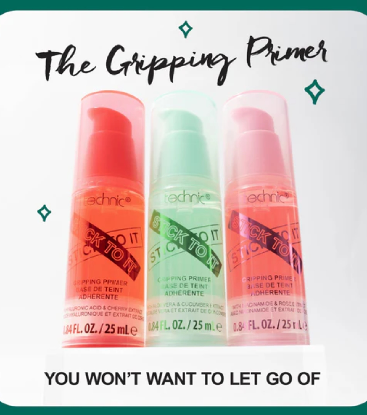 Formulado com cuidado, Stick To It da Technic Cosmetics está disponível em três fórmulas específicas para cuidados com a pele, cada uma desenvolvida para preparar o rosto, melhorar a aderência da maquiagem e se adequar perfeitamente ao seu tipo de pele.