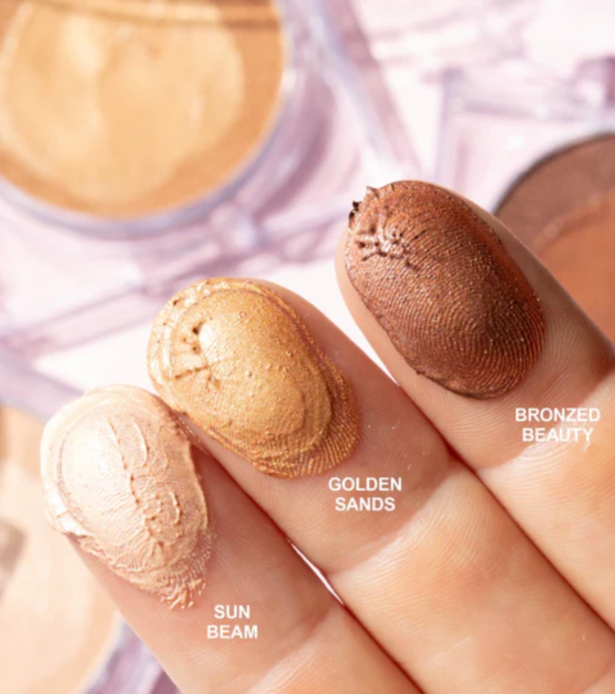 Aplique nas clavículas, ombros, maçãs do rosto ou pálpebras, ou use como toque final na maquiagem para um brilho natural e construível.