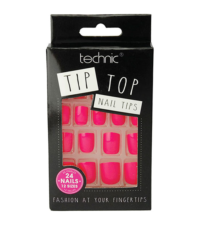 Dicas para unhas em uma embalagem de 24 unhas postiças de 12 tamanhos diferentes para máxima adaptação.