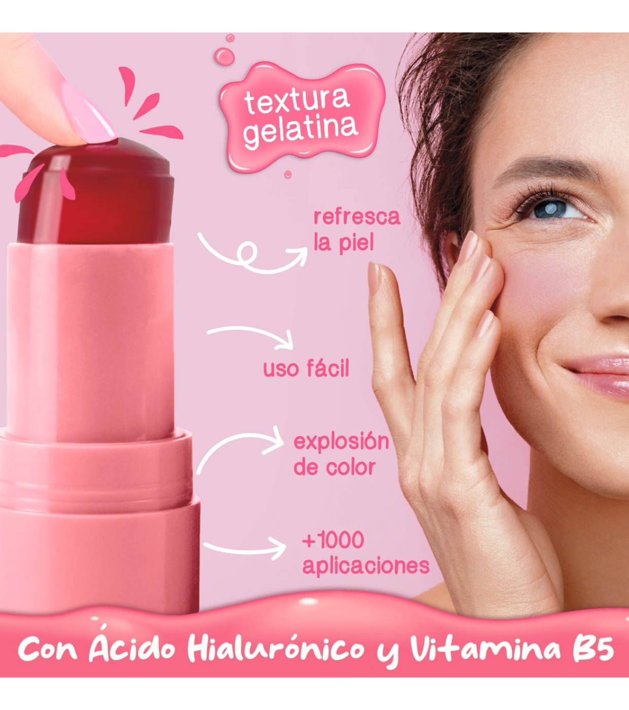 Enriquecido com Ácido Hialurônico e Vitamina B5, esse blush não só dá cor, mas nutre e hidrata a pele a cada aplicação.