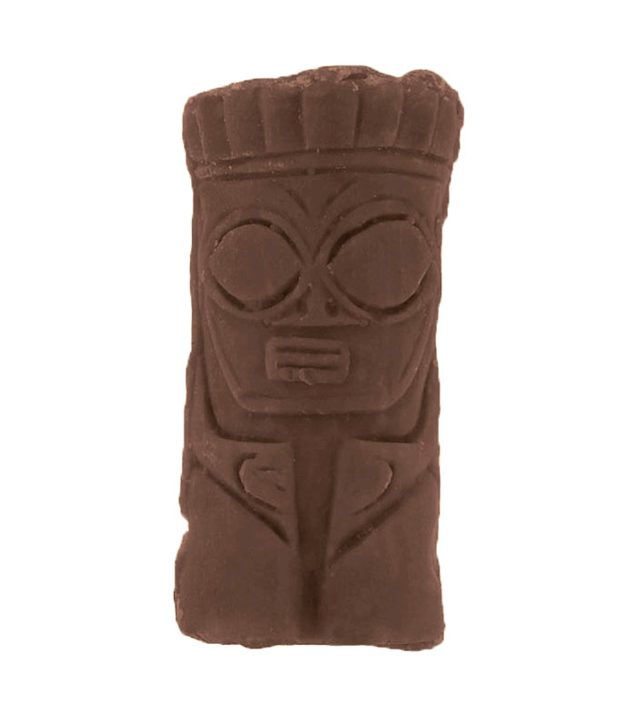 SABÃO baunilha Tiare em forma de Tiki. O produto é envolto em saco plástico.