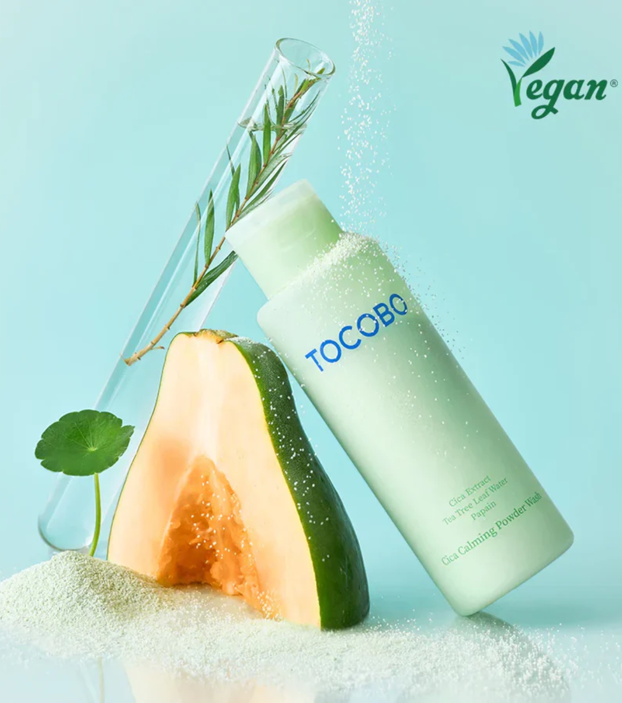 Descubra o poder do limpador facial em pó Cica Calming da Tocobo , o limpador enzimático em pó que sua pele sensível estava esperando.