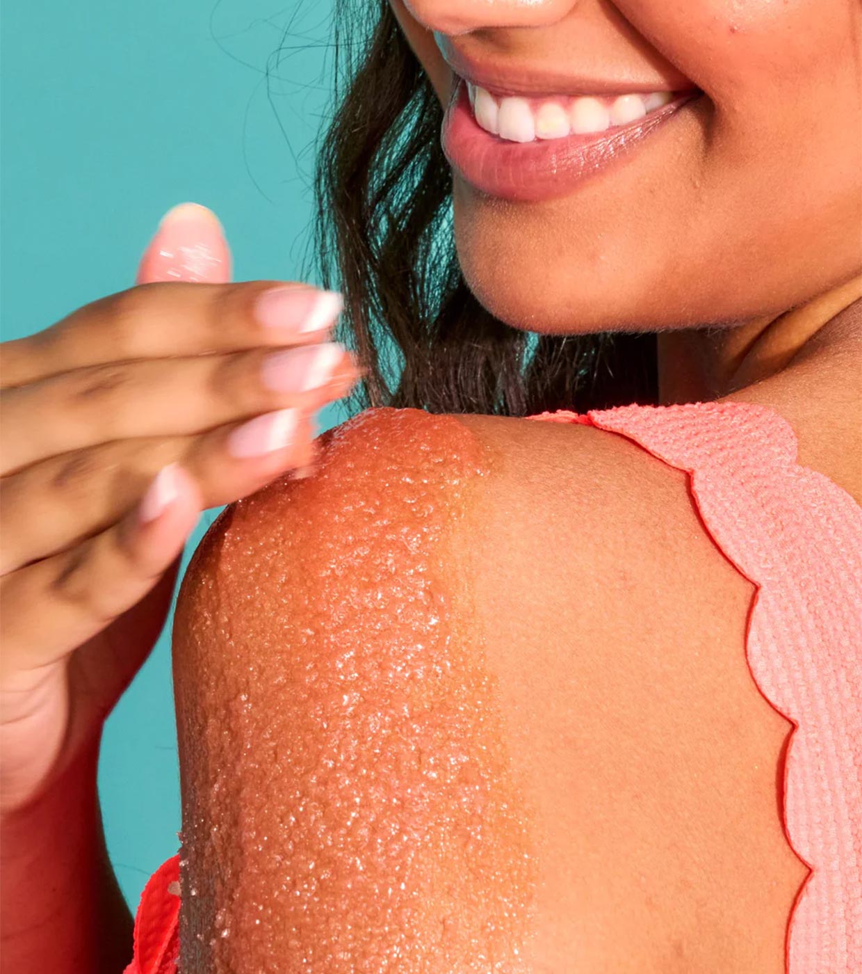 Feito com açúcar, manteiga de karité, extrato de pêssego e uma variedade de óleos naturais como caroço de damasco, prímula, abacate, macadâmia, amêndoa doce, cártamo e laranja, deixa a pele com uma sensação e um cheiro deliciosos.