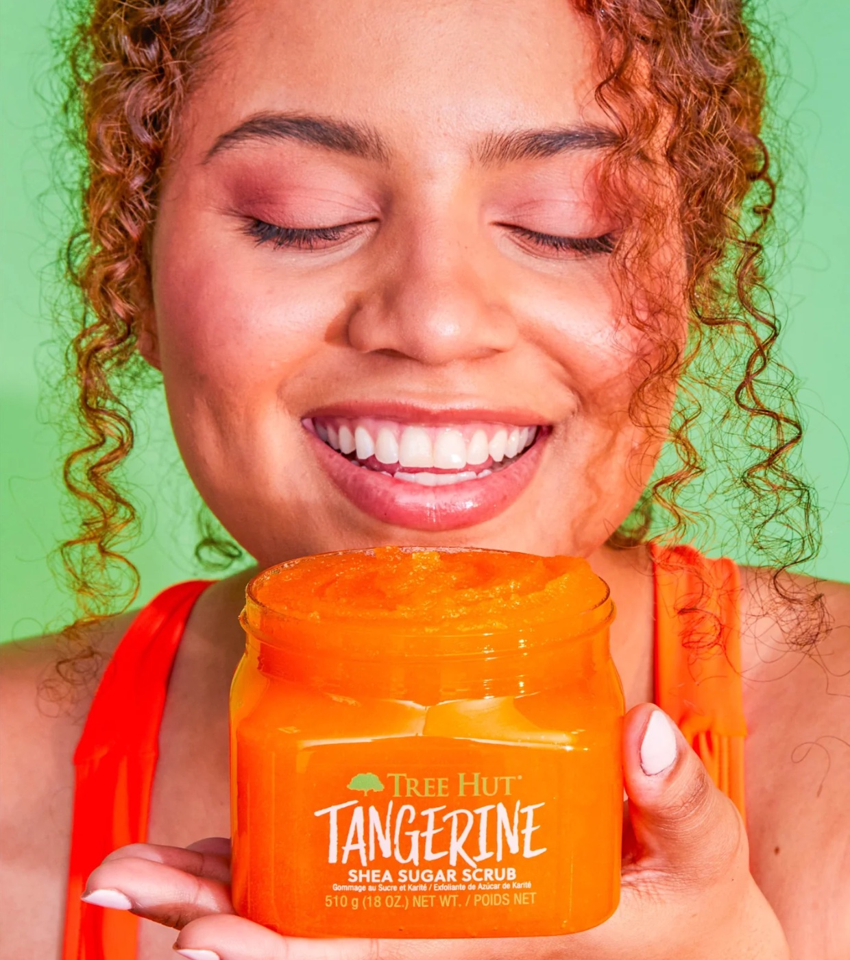 Renove sua pele e energia com o esfoliante de açúcar e karité Shea Sugar Scrub , agora com aroma vibrante de Tree Hut .