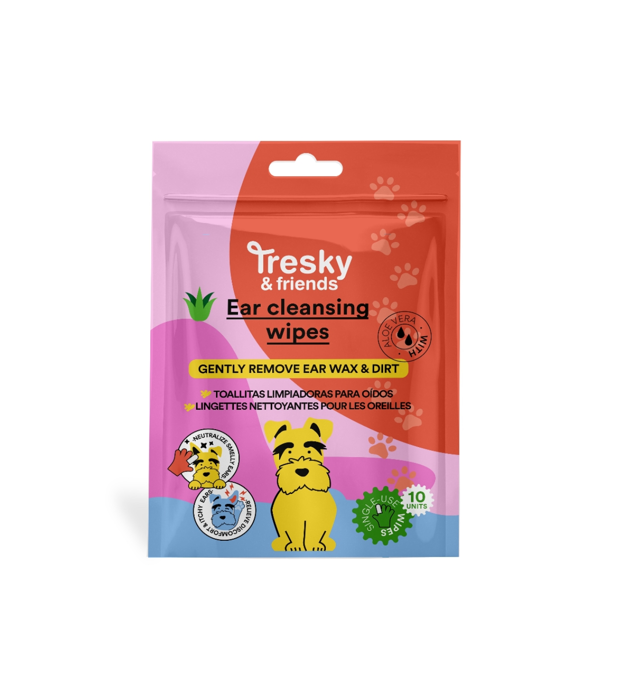 Os lenços umedecidos para limpeza de orelhas TRESKY & FRIENDS foram desenvolvidos para manter a higiene diária de cães e gatos de forma simples, prática e segura.