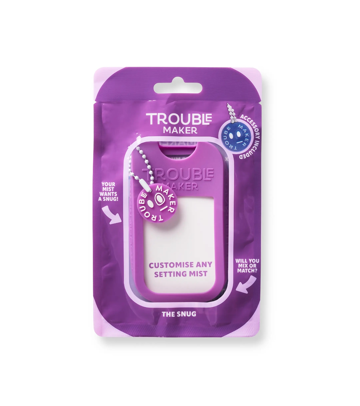 Projetado para a vida em movimento, este acessório leve, durável e fácil de segurar protege seu spray contra impactos e derramamentos, além de adicionar um toque divertido e pessoal à sua rotina de beleza.