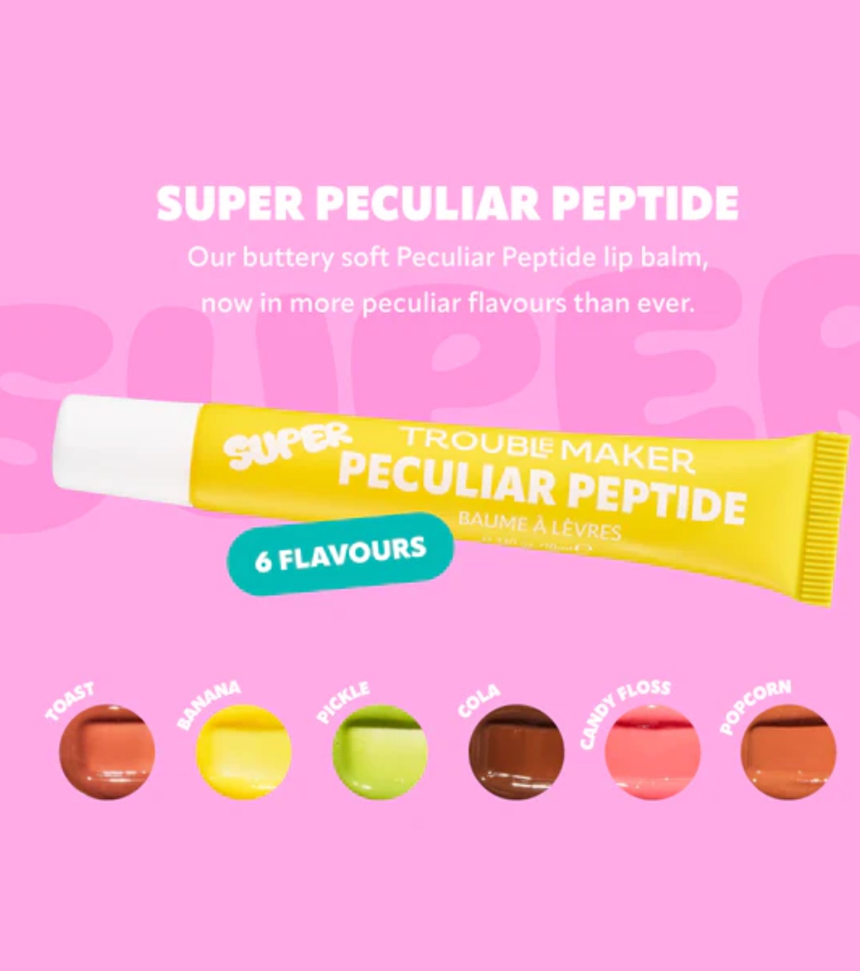 Descubra o bálsamo labial Super Peculiar Peptide da Trouble Maker , um bálsamo labial super sedoso que proporciona brilho e cuidado sem deixar uma sensação pegajosa.